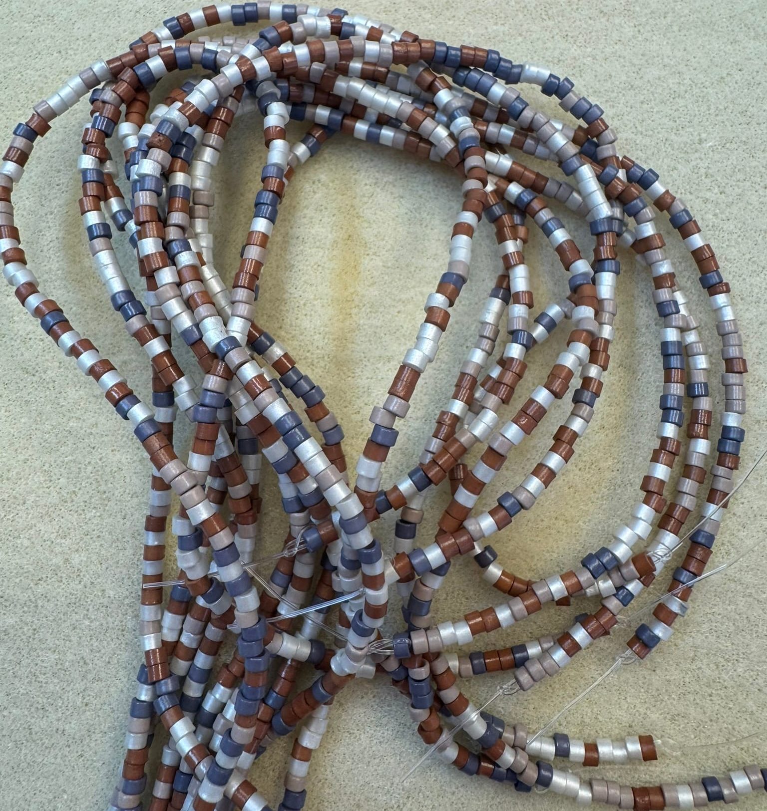 Lampwork disc beads measuring 2.5mm x 2mm with a 1mm hole. There are approx. 224 beads per strand. Colours are random and may differ slightly to the picture shown. Lovely muted tones/natural colours.