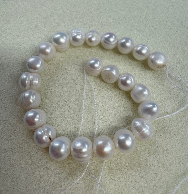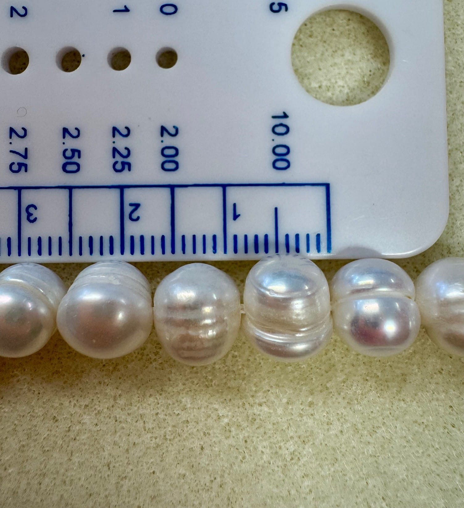 Creamy white potato freshwater pearls measuring approx. 7.5mm with a 0.7mm hole. There are approx. 23 beads per strand.