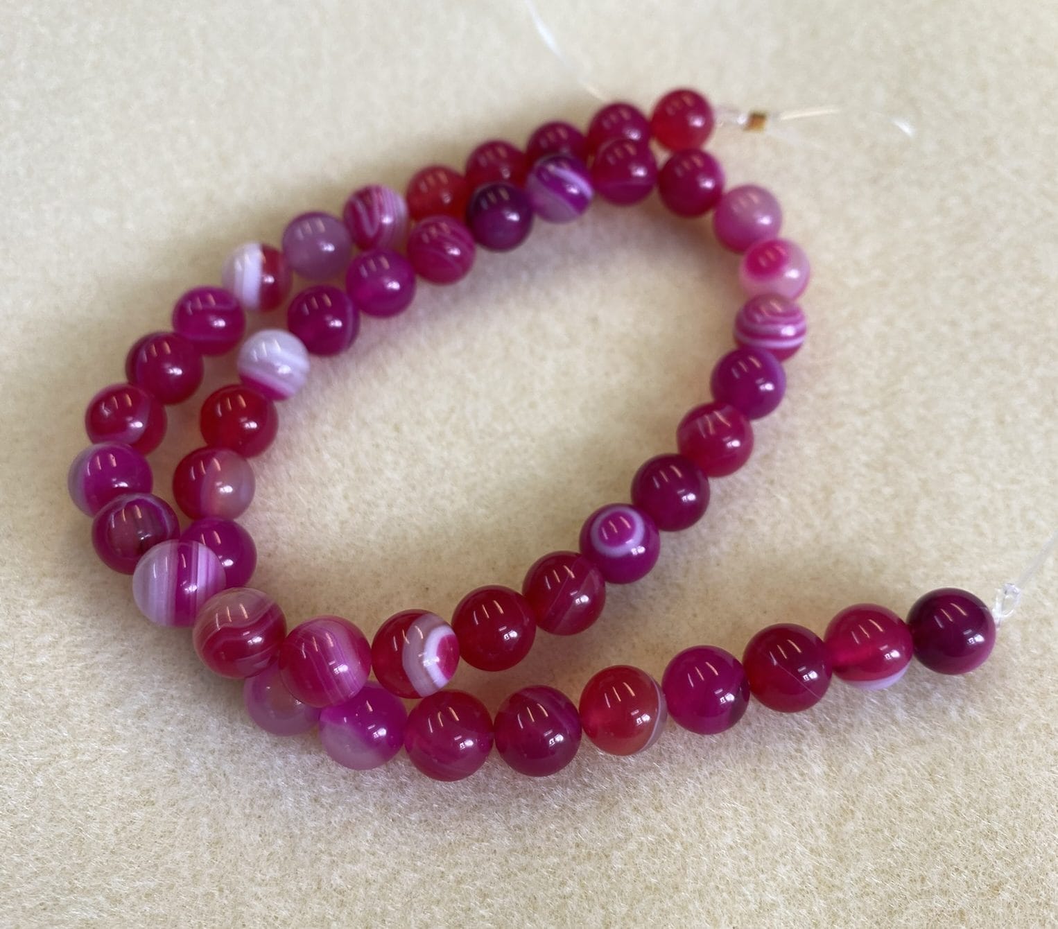Pink Striped Agate, a strand of approximately 45, round 8mm beads.