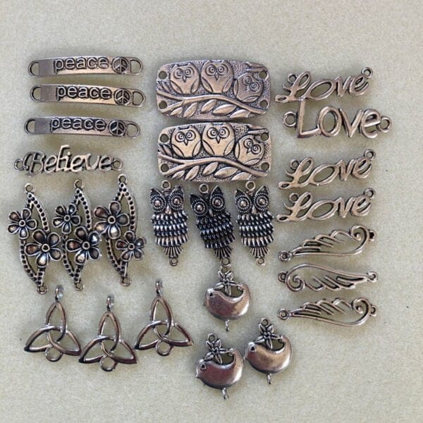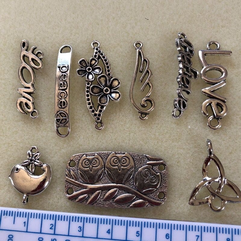 Pack of 25 assorted connectors in an antique silver colours.  Contents exactly as the images.