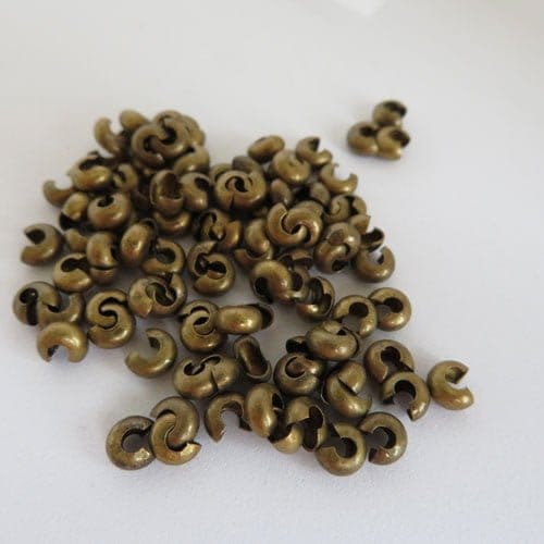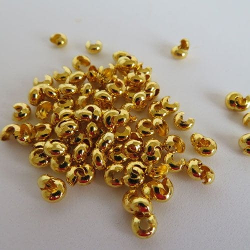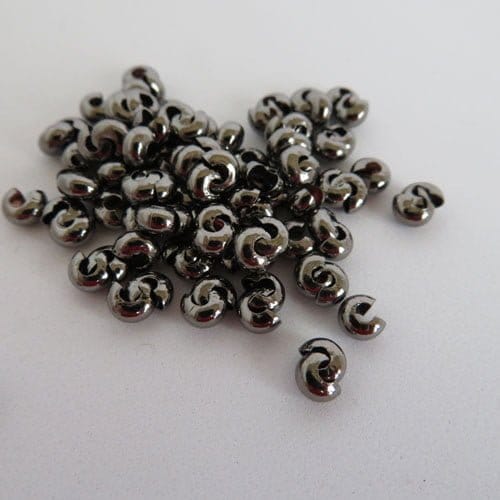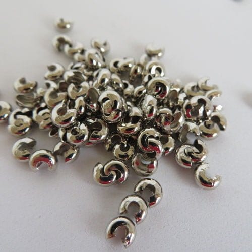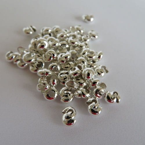 Crimp covers 4mm pack of 100. These clever covers measure 5mm but when crimped will form a 4mm round bead. For use with crimps up to 3mm. Available in Silver Plate, Gold Plate, Antique silver, Gunmetal, Bronze and Copper.
